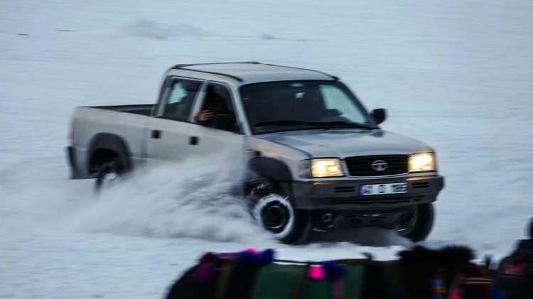 Buz üstünde heyecanlı drift ve atlı kızak keyfi
