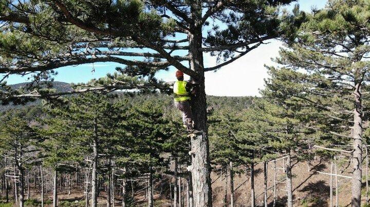 Yükseklerde çalışmanın zorluklarını ve keyifli yanlarını anlatılar. Ormanların gençlik olarak adlandırılan fidanların daha iyi ve kaliteli yetişmesi için yetişkin çam ağaçlarının budanması işini yapan Cengiz Cantırık “Buraya geldik. Bu büyük ağaçların altındaki gençliği kurtarmak için dallarını toparlıyoruz. Önce iş güvenliğimizi sağlayarak ekipmanlarımız ile bir sincap gibi tepesine tırmanarak çıkıyoruz. Aşağıdan yukarıya doğru budakları budaya budaya gidiyoruz. Yukarıdan aşağıya indiğimiz zaman hasar çok olur. Aşağıdaki genç fidanlara zarar vermemek için dikkat ediyoruz” dedi.