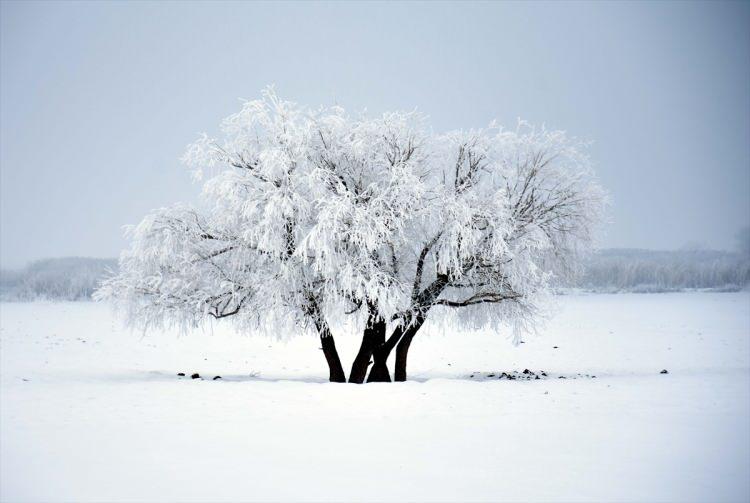 Muş'ta kar yağışının ardından etkili olan soğuk hava nedeniyle ağaçlarda oluşan kırağı güzel görüntüler oluşturdu.