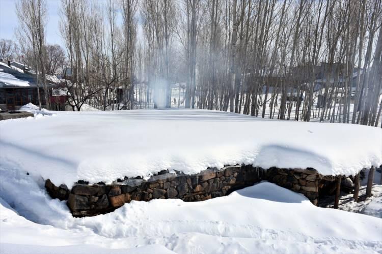 Evlerin ve müştemilatın karla kaplandığını aktaran Umur, "Köyümüzde evler genellikle tek katlı. Kar çatılara kadar yükselmiş durumda.