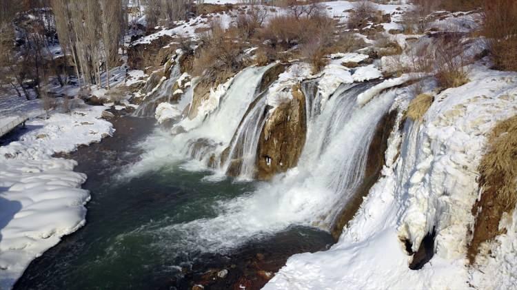 Vangölü Aktivistleri Derneği üyeleri, soğuk havanın etkisiyle kısmen donan Muradiye Şelalesi'nin döküldüğü alanda yüzdü.