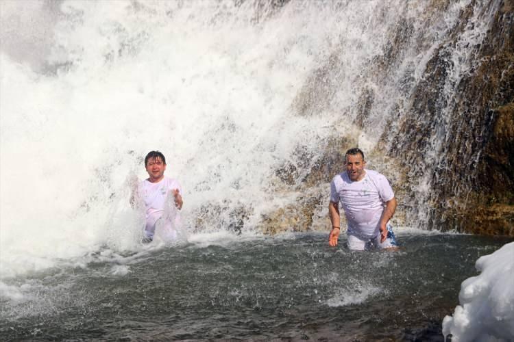 Vangölü Aktivistleri donan Muradiye Şelalesi'nde yüzdü
