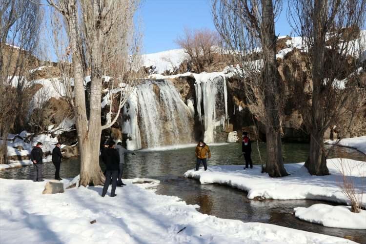 Vangölü Aktivistleri donan Muradiye Şelalesi'nde yüzdü