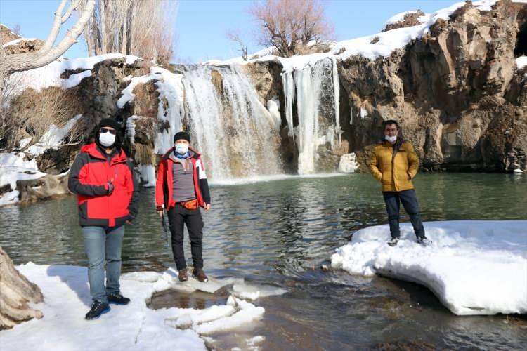 Vangölü Aktivistleri donan Muradiye Şelalesi'nde yüzdü