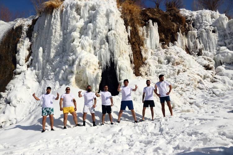 Vangölü Aktivistleri donan Muradiye Şelalesi'nde yüzdü