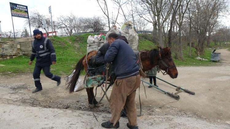 Aşırı yükten yere yığılan ata bakın neler yaptılar! Bu nasıl vicdansızlık...