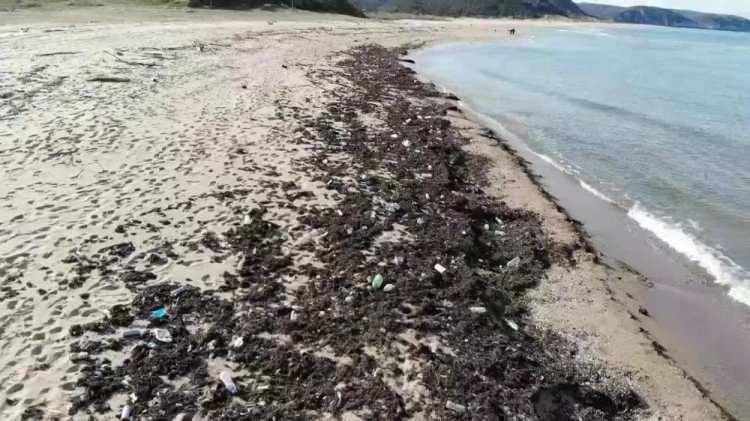 Caddebostan sahilini kırmızı yosunlar ve çöpler kapladı!