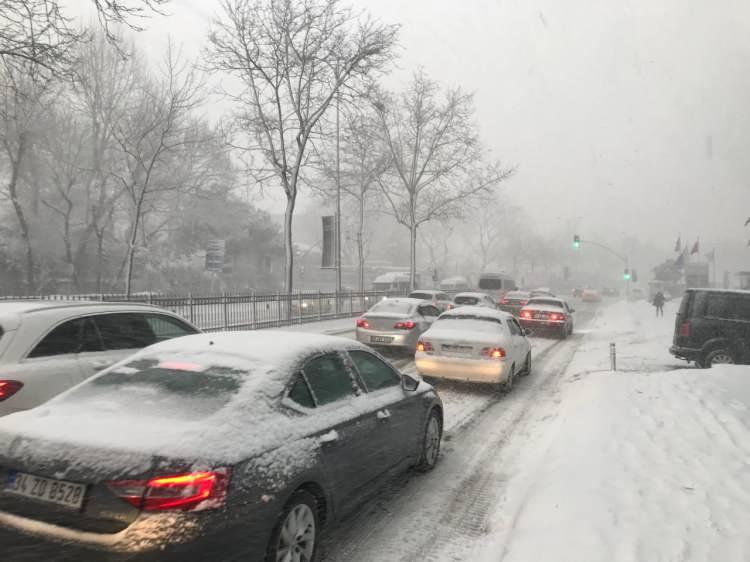 İstanbul yoğun kar altında! Araçlar yollarda kaldı...