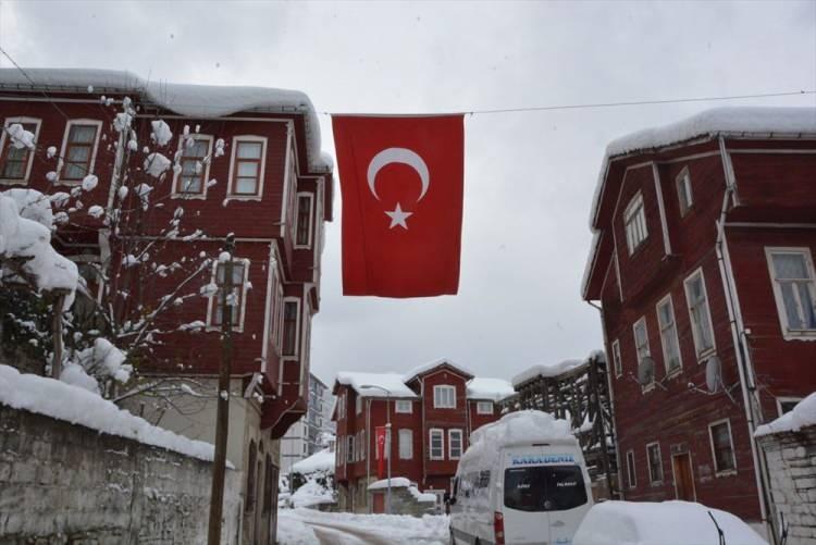 Tarihi İnebolu evleri karla süslendi