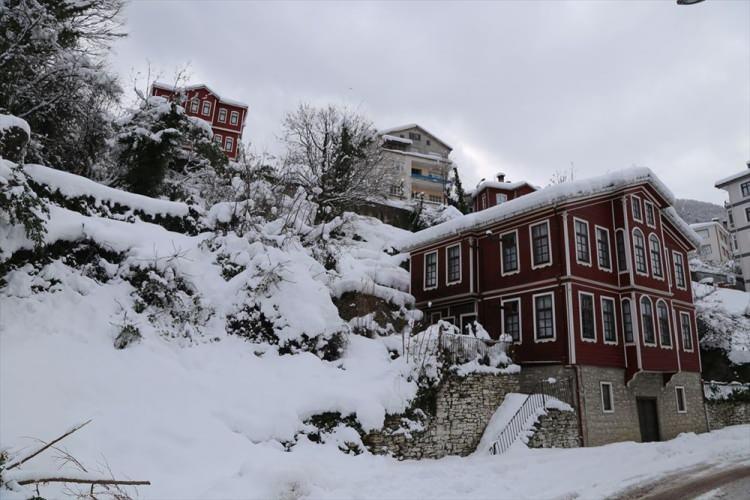 Tarihi İnebolu evleri karla süslendi