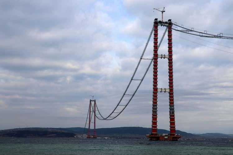 Ana halatların montajı sırasında kullanılacak 4 bin 330 metre uzunluğundaki kedi yolu kısa süre önce tamamlanırken, sırada ana halatların çekilmesi yer alıyor.