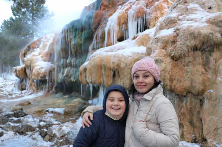 AFYONKARAHİSAR'ın Sandıklı ilçesinde hava sıcaklığı sıfırın altında 15 dereceye kadar düştü. İlçedeki kaplıcaların bulunduğu bölgede 800 metre derinlikten 60- 62 derece sıcaklıkla çıkan termal su, dondurucu soğuk nedeniyle buz tuttu. Termal suyun aktığı yapay şelalede bir yandan buz sarkıtları bir yandan sıcak su buharının ortaya çıkması görenleri şaşırttı.