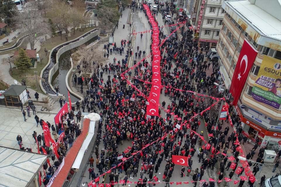 Van'da, Pençe Kartal-2 Harekatı bölgesindeki Gara'da 13 Türk vatandaşını şehit eden terör örgütü PKK'ya tepki yürüyüşü düzenlendi.