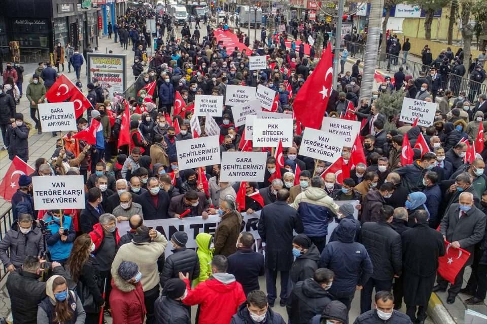 Van Valisi ve Belediye Başkan Vekili Mehmet Emin Bilmez, Van Cumhuriyet Başsavcısı Oğuzhan Dönmez, Van YYÜ Rektörü Prof. Dr. Hamdullah Şevli, İl Jandarma Komutanı Tuğgeneral Yüksek Yiğit, İl Emniyet Müdürü Ali Karabağ, kaymakamlar, belediye başkanları, AK Parti İl Başkanı Kayhan Türkmenoğlu, MHP İl Başkanı Salih Güngöralp, CHP İl Başkanı Mehmet Kurukçu ve Gelecek Partisi Van il Başkanı Karabıyık, siyasi parti ve sivil toplum kuruşu temsilcileri ile vatandaşlar Kent Meydanı'nda bir araya geldi.
