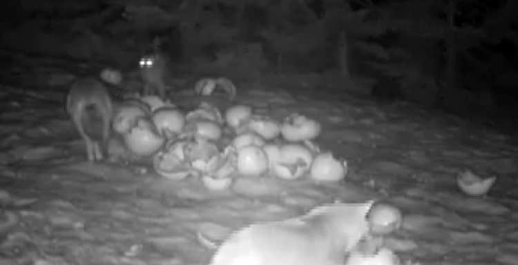 Yaban hayvanlarının bırakılan yemlerle beslenme anları kamerada
