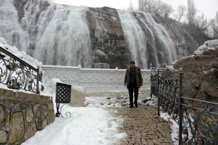 Tortum Şelalesi beyaza büründü