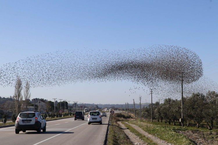 Sığırcık kuşları gökyüzünde şov yaptı!