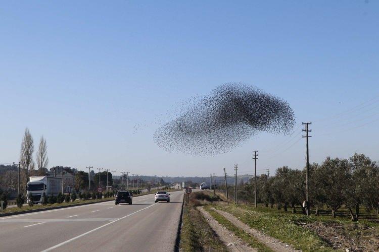 Saatte 70 kilometre hızla uçan ve 1000 kilometre yol kat edebilen sığırcık kuşlarının görsel şovu, sürücüler tarafından cep telefonuyla kaydedildi.