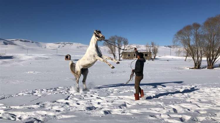 Cirit atı 'Poyraz'ın şaşırtan kar oyunu!