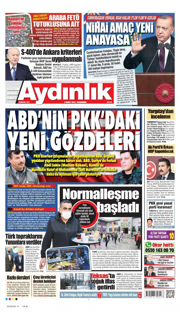 3 Mart Çarşamba gazete manşetleri - ABD'nin PKK'daki yeni gözdeleri!
