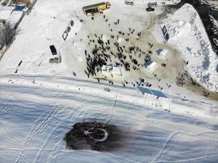 Kardan heykeller AA muhabirince drone ile havadan da görüntülendi.