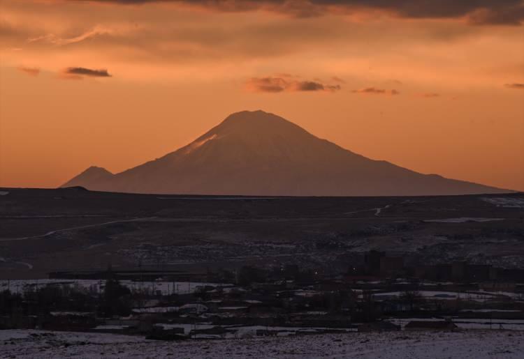 "Digor'a giderken yol kenarında sislerle kaplı Ağrı Dağı'nın zirvesini gördük.