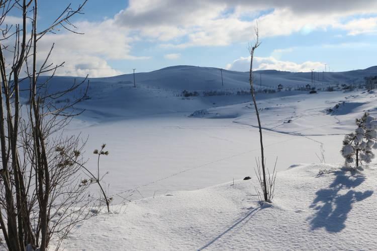 Buz tutan Üçoluk Göleti'nde görsel şölen