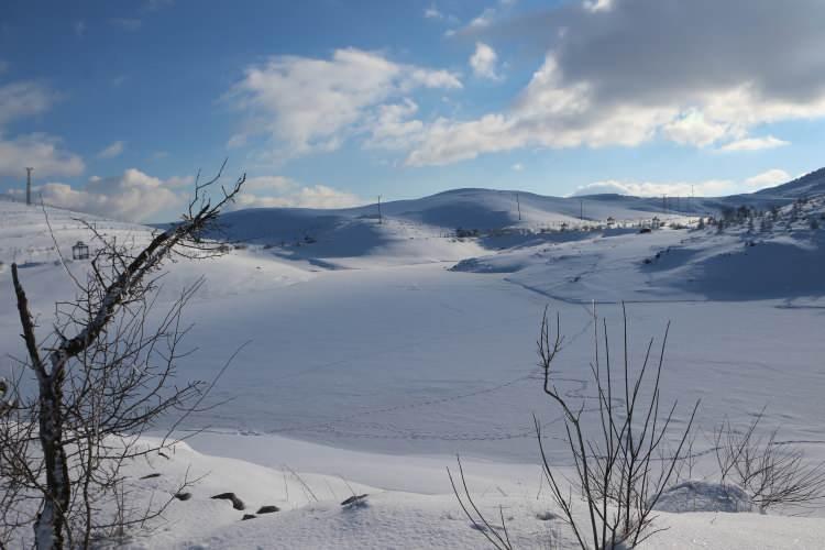 Buz tutan Üçoluk Göleti'nde görsel şölen