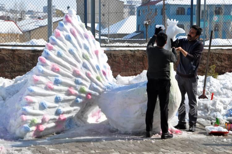 Yüksekova’da kardan ‘tavus kuşu’ yaptılar