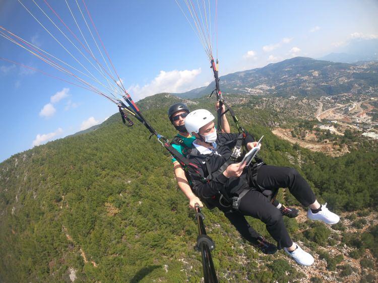 Yamaç paraşütünde kitap okuma keyfi