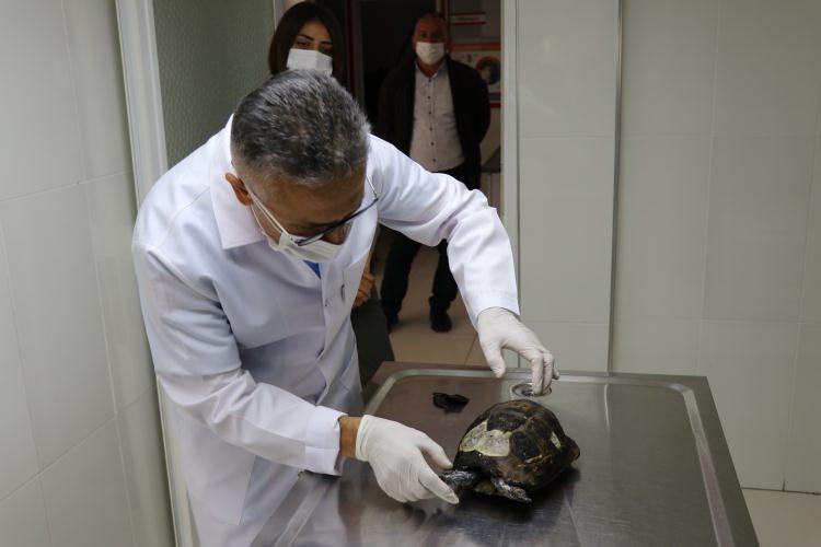 Su ile müdahalesi yapılan kaplumbağa, daha sonra veterinere getirildi. Yangında zarar gören kaplumbağanın kabuğundaki yaralara veteriner hekim Kenan Ersoy tarafından müdahale edildi. Kaplumbağanın tedavisi tamamlandıktan sonra tekrar doğaya salınacağı öğrenildi.