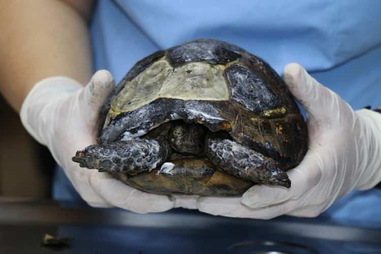 Tedavi süreci hakkında açıklama yapan veteriner hekim Kenan Ersoy, “Bugün Orman İşletme Müdürlüğü’nden Hatice hanım telefon açtı, bir yangında kara kaplumbağasının yandığını söyledi.