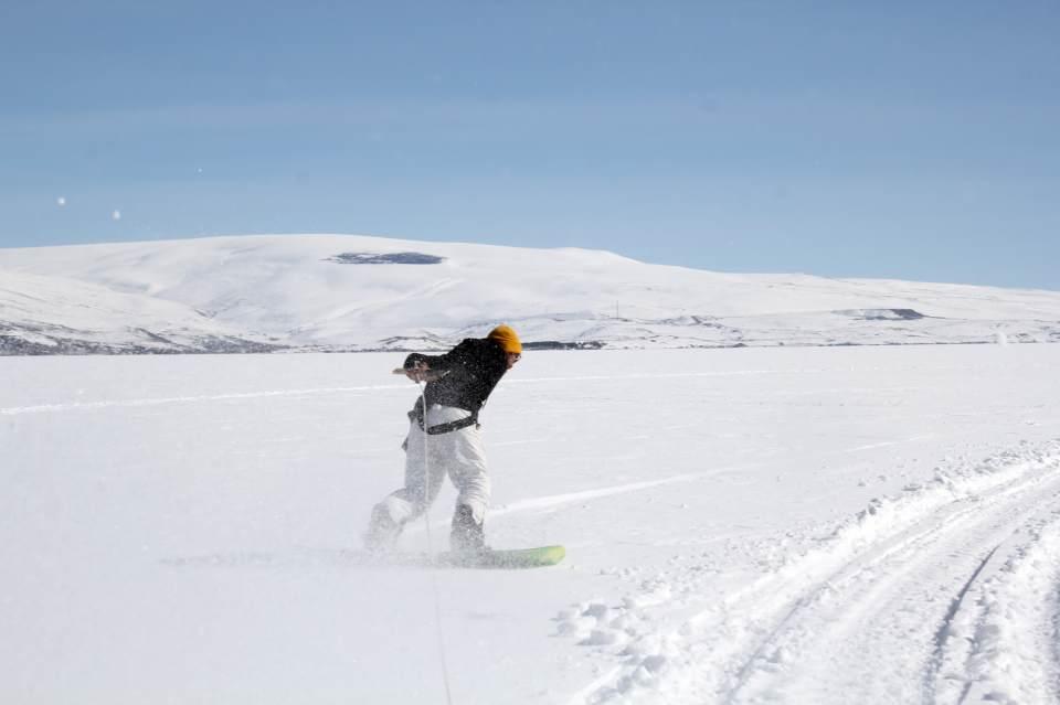 Çıldır Gölü'nde drift ve snowboard şovu!