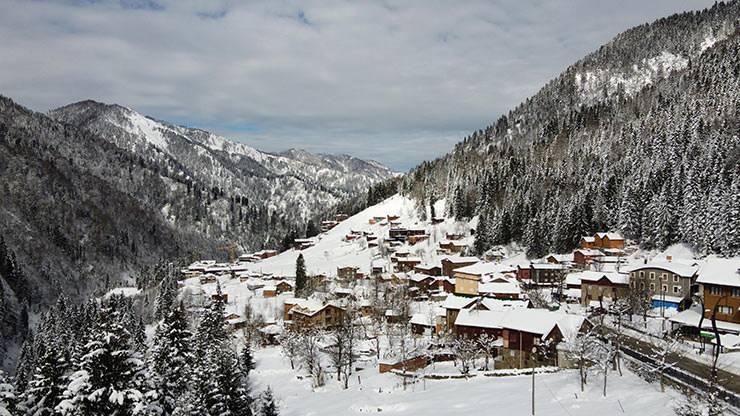 Ayder Yaylası, martta yağan karla yeniden beyaza büründü
