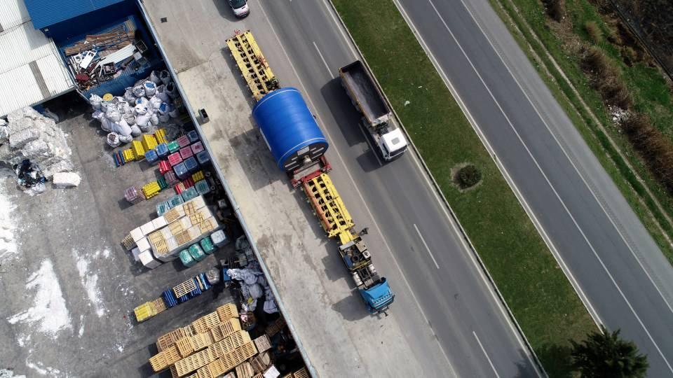 Hatay’ın İskenderun ilçesinde limandan aldığı 147.5 tonluk hamur kurutma ve kağıt sarma üretiminde kullanılan silindir taşıyan 38.5 metre uzunluğunda, 90 tekerlekli TIR, yaklaşık 250 kilometre mesafeyi 3 gün süren yolculuğun ardından Tarsus Organize Sanayi Bölgesi’ne ulaştı.