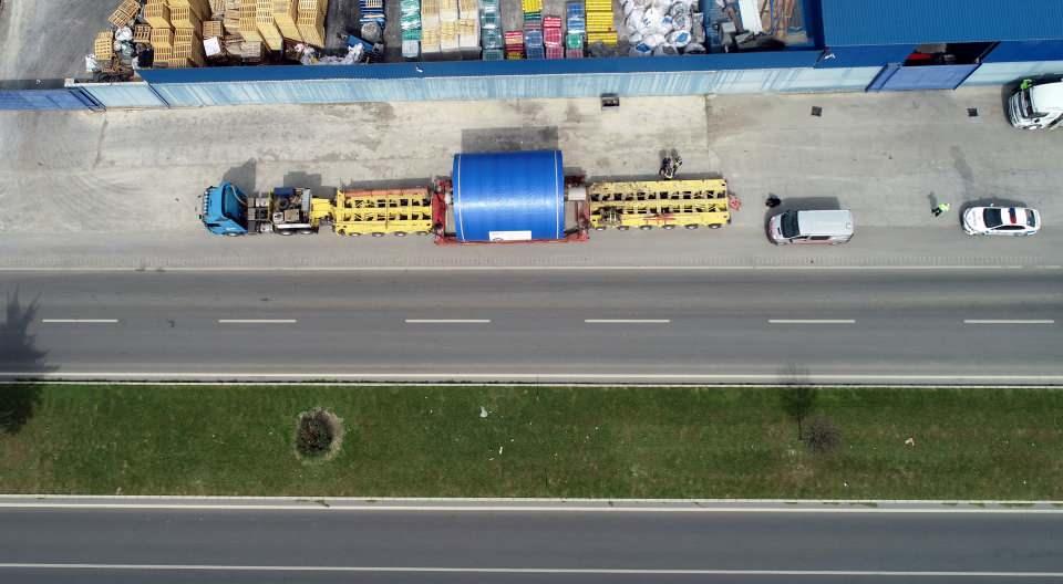 Dev silindir 90 tekerlekli tırla 3 günde taşındı