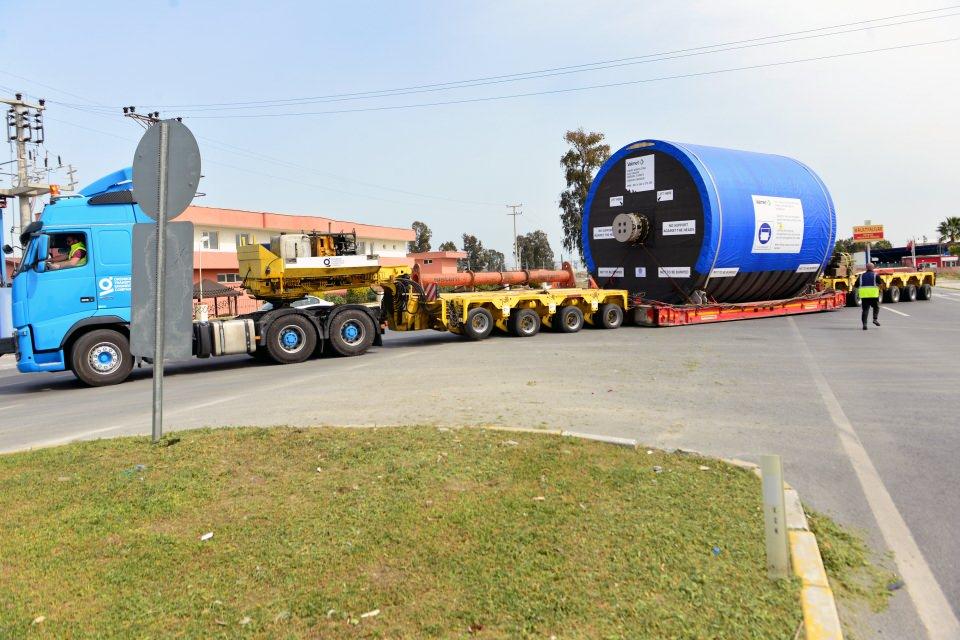 Dev silindir 90 tekerlekli tırla 3 günde taşındı