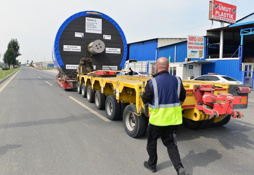 Dev silindir 90 tekerlekli tırla 3 günde taşındı