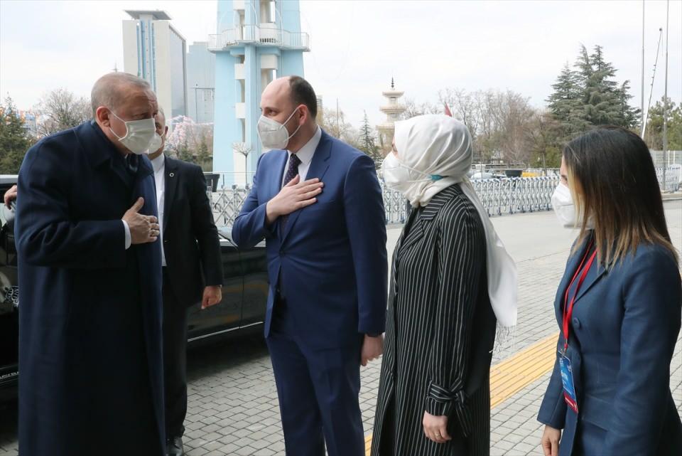 Cumhurbaşkanı ve AK Parti Genel Başkanı Recep Tayyip Erdoğan, Ankara Spor Salonu'nda gerçekleştirilen AK Parti Gençlik Kolları 6. Olağan Kongresi'ne katıldı. Erdoğan, programa gelişinde kendisini karşılayanlar arasında yer alan AK Parti Genel Merkez Gençlik Kolları Başkanı Ahmet Büyükgümüş ile selamlaştı.