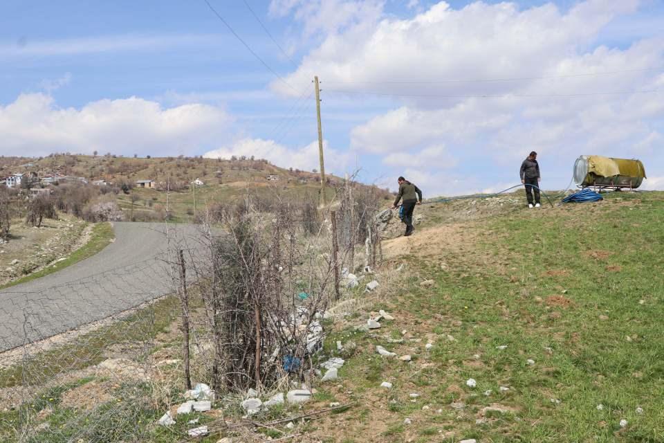 Tankerlerle suluyoruz. Bunları yetiştirmeye çalışıyoruz. Elimizden gelen bu kadar. Bursa'nın o görüntüsünün burada da olmasını istedik. Ağaçlardan sonuçta birçok canlı faydalanıyor. Neden bizim köyümüz de böyle olmasın, dedik. Bizim burada hayvancılık çok olduğu için bunları koruyamıyoruz. Köylüler olarak gittik, bizim dağ kesiminden dikenleri traktörlerle taşıdık, buraya getirdik.