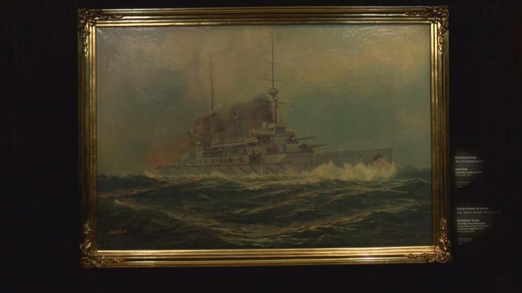 Milli Saraylar İdaresi'ne bağlı Beşiktaş'taki Resim Müzesi'nin 34 salonundan biri, Milli Mücadele ve Çanakkale Zaferi'ne ayrıldı. Çanakkale Zaferi'nin 106'ncı yılı olması dolayısıyla bugün ziyarete açılan Çanakkale Salonu'nda, büyük zaferin hangi şartlarda kazanıldığını gösteren 10 eser sergileniyor. Sergilenen eserler arasında en dikkat çekici olanlarından biri ise, Bahriyeli İsmail Hakkı'ya ait, 1915 tarihli 'Çanakkale Deniz Savaşı' adlı yağlıboya tablo.