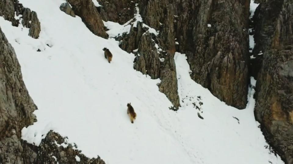 Kış uykusundan uyanan 2 bozayı dronla görüntülendi