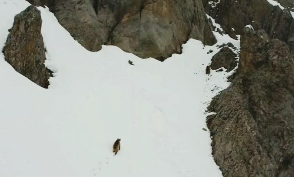 Bir süre karlı alandan ayrılarak zirvede bulunan kayalık alana gittiler. Bölgemizde yürüyüş yaparken sürekli bir yaban hayvanı ile karşılaşıyoruz.