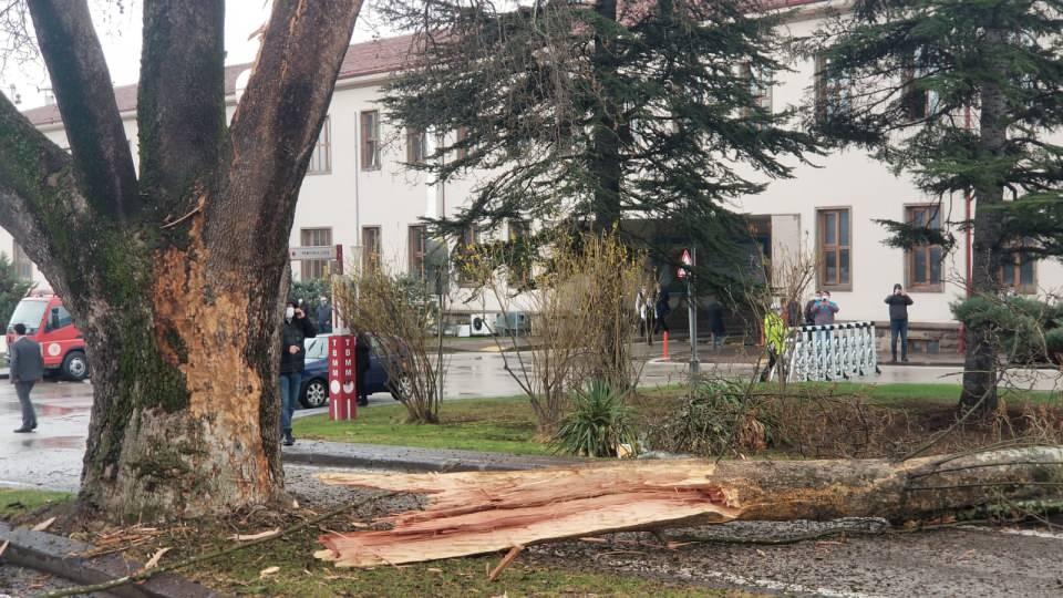 Bu yıl bakıma alınan tarihi ağaç, yıldırım isabet etmesi sonucu ortadan ikiye ayrıldı.