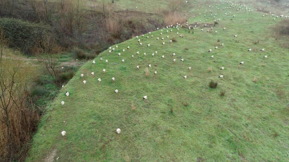 Yıldız Teknik Üniversitesi Davutpaşa Kampüsü ve Arnavutköy Bolluca'da yüzlerce leylek çimenlik alanlara kondu.