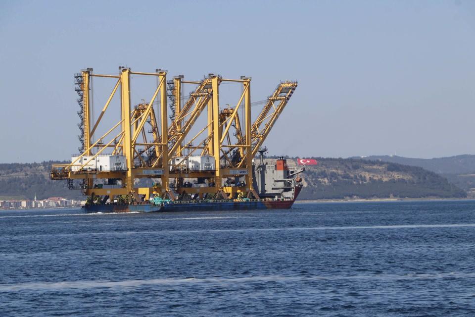 Liman vinci taşıyan dev gemi Çanakkale Boğazı’ndan geçti