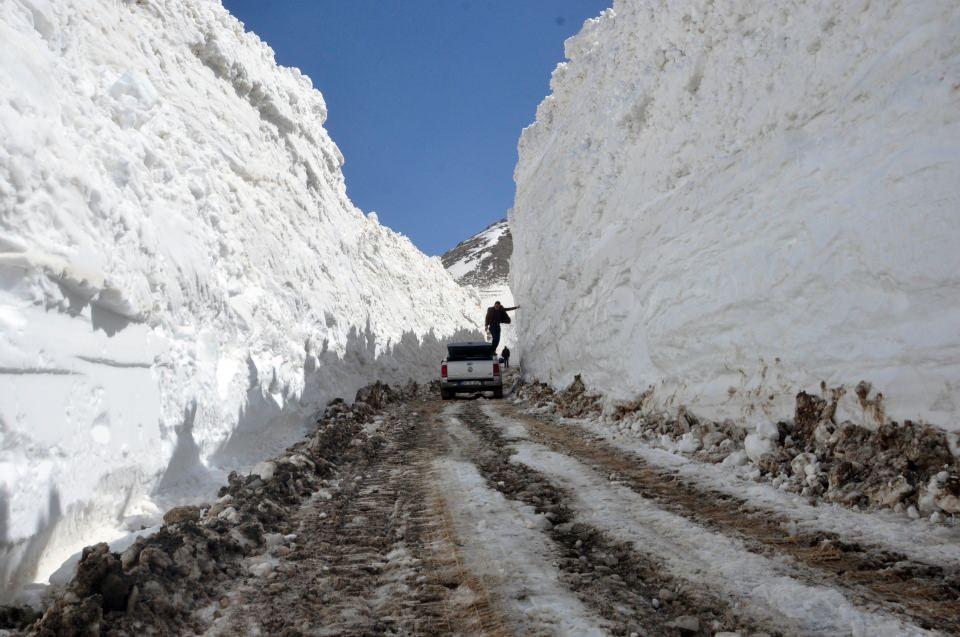 Kardan oluşan tüneller ve 8 metreyi bulan kar kalınlığına karşı zaman zaman zor anlar yaşayan ekipler, kepçe ile açamadıkları yolda ekskavatör da kullanıyor.