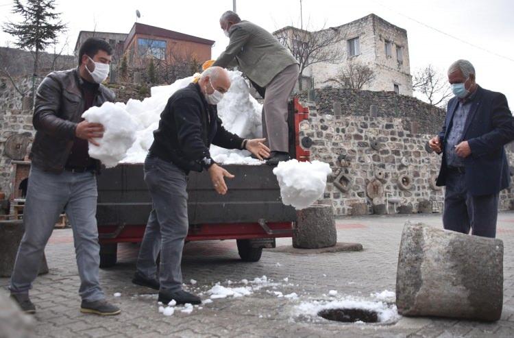 Kayseri'nin Hacılar ilçesinde 400 yıl öncesine dayanan kuyular, yazın buz gibi su tüketmek için karla dolduruldu.