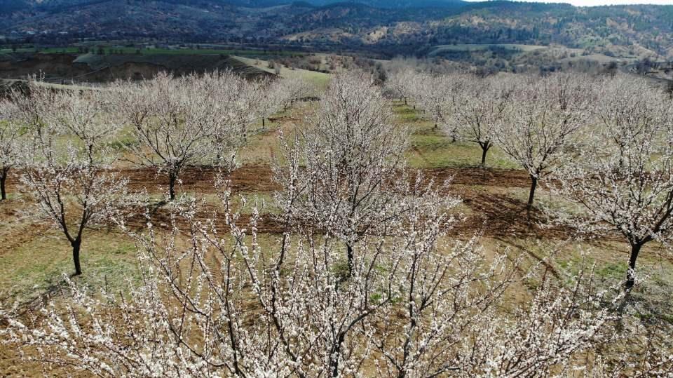 Ağaçların çiçek açmasıyla bahçeler beyaza bürünerek adeta gelinliğini giydi.