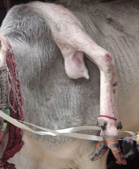 Hindistan'ın kutsal ineği olarak kabul edilen bu 5 bacaklı inek normalde türünün 4 bacaklı olmasından farklılık gösterdiği için Tanrı'nın bir tezahürü olduğuna ve iyi şans getirdiğine inanılıyor.